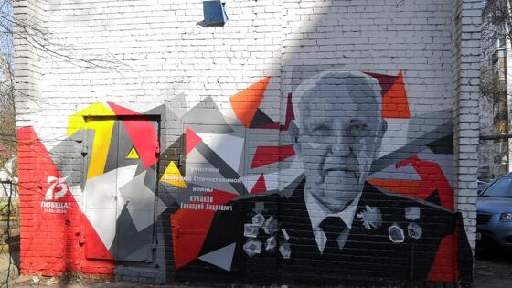 Портрет нижегородского ветерана Геннадия Кулакова появился во дворе его дома