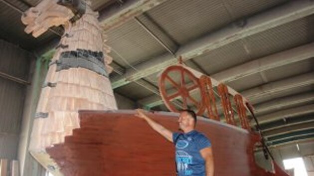 В Судаке состоялся спуск на воду и пробный рейс галеры "Таврида" - копии древнегреческого гребного судна, построенной крымскими предпринимателями Сергеем Троицким и Сергеем Мищенко. Корабль длиной 18 метров строился четыре месяца. В процессе его создания команде судостроителей необходимо было решить целый набор новых для себя инженерных задач. На завершающем этапе транспортная компания потеряла уключины от весел, и авторам проекта пришлось срочно искать им замену. Для этих целей временно использовали уключины от транспортных тележек. - Берет небольшой мандраж по поводу того, сколько еще надо сделать до 27 июня, - признался незадолго до ходовых испытаний "Тавриды" Сергей Троицкий. Накануне спуска на воду галеру выкатили из ангара и с помощью крана погрузили на специальную 20-метровую транспортную тележку. Перед самым ответственным этапом корабль осветил архимандрит Марк. После этого транспорт двинулся к морю в сторону городского пляжа Судака. От места постройки до пляжа предстояло преодолеть несколько километров по извилистым и узким дорогам. - Полным ходом идет подготовка спуска лодок, сделанных в Судаке, - написал Сергей Троицкий на своей странице в Facebook. - Мы уехали в 20 часов, но похоже работы будут всю ночь... Вместе с "Тавридой" к морю отправился и построенный здесь же корабль "Алые паруса". Торжественная церемония спуска на воду состоялась сегодня в 12 часов. Построенные для туристической отрасли корабли, похоже, оправдали ожидания их создателей. Сам факт появления необычных судов на пляже и последующий пробный рейс вызвали ажиотаж у посетителей курорта. Выход в море и проверка на устойчивость являются обязательной процедурой перед регистрацией судна в государственном реестре плавсредств. Теперь "Таврида" и "Алые паруса" готовы принимать туристов. Справка "РГ" Гребное судно "Таврида" имеет длину 18,5 метра, ширину - 4 метра. Корабль привидится в движение 30 гребцами. Каждое весло имеет длину 5 метров и вес около 20 килограмм. Водоизмещение галеры 15 тонн.