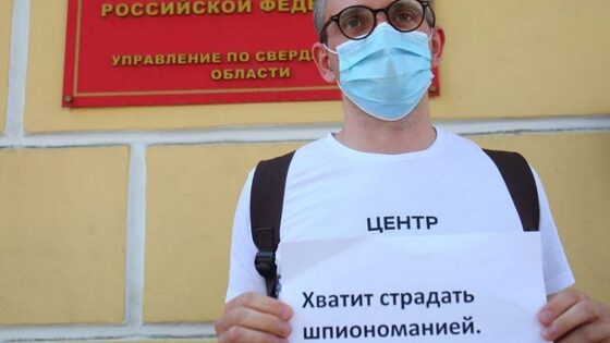 В Екатеринбурге у здания УФСБ по Свердловской области проходят одиночные пикеты местных журналистов. Они проводятся в поддержку бывшего журналиста газет «Коммерсантъ» и «Ведомости» Ивана Сафронова, который в последние месяцы работал советником главы Роскосмоса. Вчера его задержали по подозрению в госизмене (ст. 275 УК РФ). В одиночных пикетах участвовали шеф-редактор Znak.com Дмитрий Колезев, главный редактор «РБК-Екатеринбург» Богдан Кульчицкий, директор сети городских порталов в Hearst Shkulev Media Ринат Низамов, главный редактор 66.ru Дмитрий Шлыков, главный редактор E1.RU Оксана Маклакова и другие журналисты. Пикетчики призывают освободить Ивана Сафронова и дать свободу журналистам. «Хватит страдать шпиономанией. 2020-й – не 1937-й!», «Свобода слова – не госизмена. Хватит», «Екатеринбург за свободу слова» – написано на плакатах. Фото: Дмитрий Колезев / Instagram