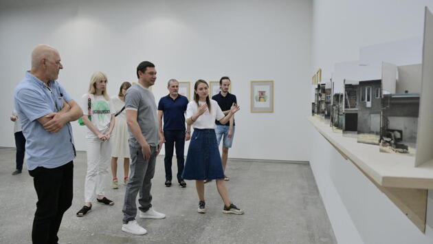 В минувшую субботу глава Краснодара Евгений Первышов посетил в Центре современного искусства «Типография» экспозицию «Кооператив Восход», где куратор «Типографии» Елена Ищенко провела экскурсию по выставке. Затем мэр города в неформальной обстановке пообщался с краснодарскими художниками и скульпторами. «Кооператив Восход» – это проект, посвященный специфическим для постсоветского пространства районам – жилым гаражным кооперативам. Больше года художница Елена Колесникова исследовала жилые гаражи в нескольких курортных городах края. В своих работах автор персональной выставки отразила новый виток в развитии гаражных кооперативов, которые в последние годы стали использовать для проживания. Но там, по сути, нельзя жить, поскольку к ним не подведены коммуникации, вода и прочее. Центральным объектом выставки стала инсталляция – двухэтажный гараж. Евгений Первышов прошелся по «Типографии», которая в прошлом году переехала в одно из зданий на территории выставочного центра на ул. Зиповской, 5. В просторном здании теперь можно не только представлять большие экспозиции, но и проводить мастер-классы, лекции и кинопоказы, устраивать заседания дискуссионных клубов. Ленин и «Столпы» Евгений Первышов пообщался с директором Евгением Руденко и активом «Типографии». Разговор получился очень интересным и содержательным. Более часа участники дискуссии обсуждали вопросы не только дальнейшего развития «Типографии», но и интеграции современного искусства в городскую среду. Речь шла о проведении нового конкурса для установки современных скульптур в зеленых зонах и на улицах Краснодара. Художник Владимир Мигачев предложил провести аналогичный конкурс для создания масштабных граффити, имеющих подлинную культурную ценность. По словам участников встречи, Центр современного искусства «Типография» готов выступить организатором таких конкурсов. А победители смогут реализовать свои проекты за счет внебюджетных источников. В итоге было принято решение о проведении конкурса, условия для которого станет разрабатывать «Типография». Со своей стороны, администрация города определит места для установки будущих арт-объектов. По мнению главы города, новые арт-объекты органично сочетаются с историческими памятниками кубанской столицы. Так, композиция «Столпы» художника Виктора Линского, установленная в Вишняковском сквере, соседствует с памятником Ленину, который реконструировали в 2017 году. Одним из мест для новых арт-объектов, как считает Евгений Первышов, может стать сквер Дмитриевский возле стадиона «Кубань», его сейчас благоустраивают. В дальнейшем современные скульптуры могут появиться и на новой набережной Краснодара. Нередко художественные проекты не могут обойтись без коммерческой или государственной материальной поддержки. Поэтому участники встречи обсуждали возможности создания успешной коммуникации с властью, бизнесом, спонсорами — для совместного осуществления проектов. Мэр города Евгений Первышов рассказал о большой работе по переселению из ветхого и аварийного жилья, которая сейчас проводится. Он подчеркнул, что дома в историческом центре города после реконструкции могут быть предоставлены (на льготных условиях) под галереи, выставочные пространства и мастерские краснодарским художникам. Новые арт-объ