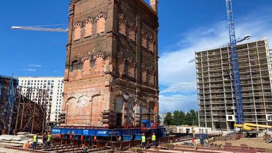 Можно ли подвинуть здание? Совершенно точно да – если речь идет о его сохранении. В июле 2020 года в Москве произошло удивительное событие: на Складочной улице на сто с лишним метров передвинули водонапорную башню конца XIX века постройки, принадлежавшую бывшему заводу «Борец», – все для того, чтобы спасти сооружение от сноса. За последние сорок лет это первое здание, которое сменило «место жительства». Случаев, когда дома «переезжали» на самом деле немало: первое документальное свидетельство перемещения здания на другое место относится к 1455 году. Тогда итальянский архитектор и инженер Аристотель Фиораванти за несколько дней передвинул на 13 метров колокольню церкви в Болонье, что позволило освободить место для строительства нового административного здания. В России такую практику впервые применили в 1812 году, когда крепостной механик-самоучка Дмитрий Петров вместе с рабочими передвинул деревянную церковь в Моршанске на 42 аршина. Последним значимым опытом передвижки зданий в столице был переезд дома Сытина на Тверской, к углу Настасьинского переулка, в апреле 1979 года. Здание двигали на 47 метров вдоль улицы, чтобы сохранить и расчистить пространство для нового корпуса «Известий». Конечно, роль и значение водонапорной башни конца XIX века на бывшем заводе «Борец» в московской истории и архитектуре невозможно сравнивать ни с домом Сытина, ни со знаменитыми передвижками 1930–1940-х годов, когда перемещали Саввинское подворье, дом генерал-губернатора, Глазная лечебница на Тверской и другие дома-путешественники. Однако же ее переезд – чрезвычайно важное событие. Участок на Складочной улице, 6 до недавнего времени был территорией действующего компрессорного завода «Борец» – одного из крупнейших машиностроительных предприятий в Москве. Основанный в октябре 1897 года как «Бутырский машиностроительный завод Густава Листа», он строился по проекту архитекторов Николая Струкова и Николая Поликарпова. В военные годы «Борец» производил мины для фронта – их металлические корпуса в изобилии находили в наши дни при земляных работах на территории. В 2008 году завод был закрыт, поскольку владельцы решили перенести производство в Краснодар, а в середине 2010-х годов участок площадью 12,8 га неподалеку от Третьего транспортного кольца продали девелоперам. Здесь планируют построить жилой комплекс и технопарк. Важно отметить, что никаких формальных обязательств сохранять башню на заводе «Борец» у застройщика не было – она не обладает статусом объекта культурного наследия. Тем не менее, строительная компания бережно отнеслась к исторической постройке и решила спасти башню и два других заводских здания. Чтобы не сносить, три исторических строения 1898-1899 годов – модельную мастерскую, сборочный корпус и водонапорную башню – было решено сдвинуть на южную сторону участка и интегрировать в новый комплекс технопарка. В них обустроят офисы, а также культурную и музейную зоны. Для перемещения огромная водонапорная башня весом 1600 тонн с заложенными окнами и дверьми была отделена от фундамента, укреплена металлическими поясами, распорками и стальными затяжками и поставлена на металлическую платформу-раму. Под башню подвели монолитную железобетонную плиту, чтобы было во что упирать домкраты. Здание ехало по специально построенным для этого «рельсам»