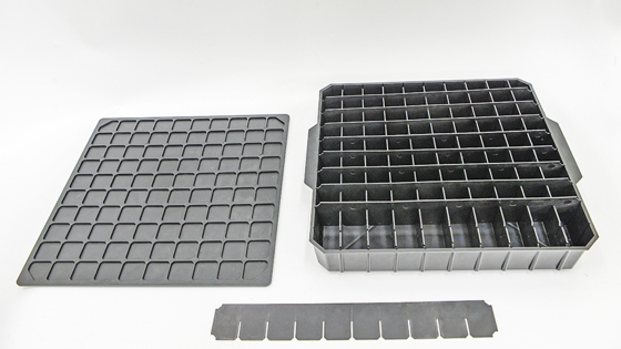 На Арзамасском приборостроительном заводе им. П.И. Пландина" начато производство пластмассовой антистатической тары. Лоток с пазами для подвижных перегородок-разделителей. Это позволяет моделировать нужное количество и размер ячеек в зависимости от предъявляемых требований. А наличие выемок в крышке позволяет устанавливать лотки друг на друга, исключая их смещение. В АО «Арзамасский приборостроительный завод им. П.И. Пландина» начато производство пластмассовой антистатической тары для хранения и транспортировки электронных компонентов. Обычно на сборочном производстве используется деревянная тара. Для предотвращения накопления статического электричества её покрывают специальным составом, покрытие периодически обновляется. Однако во всём мире уже широко применяется антистатическая тара из пластика, но стоит она достаточно дорого. Изготавливать пластмассовую антистатическую тару на собственной производственной базе — в цехе по переработке пластмасс №31 — предложил заместитель начальника цеха №42 АО «АПЗ» Сергей Дятлов. Руководство идею поддержало и поручило разработку тары начальнику конструкторско-технологического отдела пластмасс (КТОП) СГТ Виктору Ширкину и заместителю начальника СУП Алексею Турутину. На фото: заместитель начальника службы управления производством Алексей Турутин и начальник конструкторско-технологического отдела пластмасс службы главного технолога Виктор Ширкин за разработкой варианта антистатической тары. «На первом этапе мы проанализировали все виды тары (а их достаточно много — более ста различных вариантов), которые есть в сборочных цехах, чтобы создать универсальный вариант, — рассказывает Виктор Ширкин. — В результате проведенных исследовательских работ была спроектирована модель со съемными перегородками-разделителями. Это даёт возможность самостоятельно моделировать количество и размер ячеек в зависимости от потребностей. На основе этого универсального лотка были разработаны три варианта с различными габаритными размерами». Одновременно специалисты проектировали оснастку и подыскивали антистатический материал, что тоже оказалось делом непростым. В результате из восьми видов опробованных полимерных материалов только один соответствовал основному требованию ОСТа: удельное поверхностное сопротивление тары, изготовленной из него, не превышало 10 в шестой степени Ом. Далее в цехе №65 сделали оснастку, и в цехе №31 начали изготавливать антистатическую тару. «Задействована одна единица высокопроизводительного оборудования — машина литья под давлением SP-400. Изготовление одного контейнера на ней длится около двух минут. К работе привлекаем самых опытных наладчиков, — говорит начальник цеха №31 Роман Большаков. — Несмотря на кажущуюся хрупкость, тара очень прочная и надежная: при проектировании конструкторы ввели специальные рёбра жесткости, чтобы при таком достаточно большом объеме — 400×400 мм — не было никакого коробления». Первыми с новой тарой начнут работать в сборочном цехе №41. Если она хорошо проявит свои антистатические свойства, то будет изготовлены и для других сборочных цехов. Наладчик машин и автоматических линий по производству изделий из пластмасс цеха №31 Игорь Логинов вынимает готовый лоток из загрузочного бункера термопластавтомата SP-400. Кс