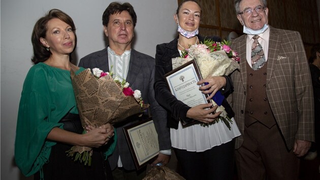 Традиционно собрание труппы театра проходило 27 августа в день рождения его основательницы Наталии Ильиничны Сац, чей портрет с цветами красовался на сцене большого зала. Георгий Георгиевич Исаакян, сняв маску, в микрофон тепло поприветствовал половину своих коллег и соратников, сидящих в зале. По рекомендации Роспотребнадзора вторая половина коллектива собралась на встречу двумя часами позже. Главреж настоятельно посоветовал: "Отказаться от театральной привычки после отпуска броситься на грудь коллеге, обнять и поцеловать его. Новый пандемический этикет требует держать дистанцию, перейти на японский стиль общения, здороваясь поклонами". Худрук театра Георгий Исаакян и глава Департамента поддержки музыкального искусства Оксана Косарева. Фото: Елена Лапина Далее Исаакян продолжил: "У нас будет странный сезон. Во-первых, он открывается в ситуации неясности, неопределенности и неустойчивости. Все распоряжения, рекомендации, понятно, практически ежедневно будут меняться в лучшую или худшую сторону. То, к чему мы приучили себя и своих коллег, а именно, к долгосрочному планированию, к видению дальней перспективы на несколько сезонов вперед, к сожалению, на время из нашей жизни уходит. Летом мы перешли к очень короткому планированию с горизонтом в 2-3 недели. С большей или меньшей долей вероятности мы точно знаем, что мы делаем до конца сентября, про октябрь мы знаем меньше, про ноябрь мы не знаем ничего. И так будет, пока не стабилизируется ситуация с эпидемией во всем мире. Это касается не только нас. Это огромный удар по всей оперно-балетной жизни планеты." Затем худрук оптимистично улыбнулся. "Если ничего кардинального не случится, то 21 ноября мы будем праздновать 55-й День рождения нашего театра", - закончил он под аплодисменты зала. Георгий Исаакян, Оксана Косарева и главный дирижёр театра Алевтина Иоффе. Фото: Елена Лапина Исаакян поблагодарил своих родных и любимых коллег за стойкость и оптимизм, проявленные в дни карантина, за непрерывный онлайн контакт всех театральных цехов, за юмор, в конце концов, который поддерживал дух коллектива. Собравшимся был представлен ролик, совместный handmade самих же сацовцев, о жизни до и в период самоизоляции, сопровождавшийся здоровым смехом зала. Худрук также выразил огромную благодарность Министерству культуры РФ в лице Оксаны Валентиновны Косаревой, руководителя Департамента Минкультуры РФ, за непрерывную финансовую поддержку всех работников театра в тяжелый 4-месячный бездоходный период. Были сохранены все зарплаты, выплаты и отчисления на содержание огромного здания театра. О. В. Косарева, в свою очередь, обратилась к собранию со словами поздравления в связи с началом юбилейного, но непростого сезона. Она поделилась трудностями переговоров Минкультуры с Роспотребнадзором в отношении работы музыкальных театров, разъяснила новые особенности трудового процесса, выразив надежду, что худшее осталось позади. И долгожданная реконструкция, и нежданная пандемия, каждая на свой лад, внесли коррективы в жизнь сацовцев, заставив смодулировать все их планы и графики из удобной рабочей тональности в далекую родственницу, сменив все диезы на бемоли и наоборот. Уже весь прошлый сезон подготовительные работы к масштабному ремонту здания требовали подчинять себе процесс репетиций и показ спек