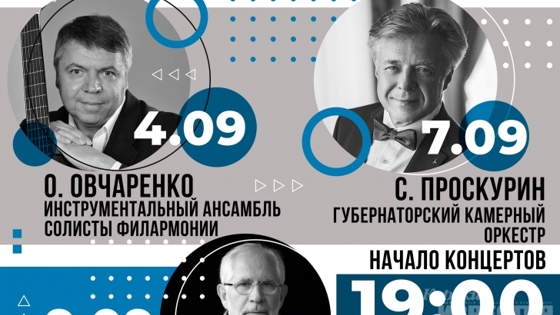 Курская государственная филармония запускает новый проект «Музыкальные вечера. Открытый формат». В его рамках концерты пройдут во внутреннем дворике концертного зала «Свиридовский» на ул. Сонина, 4. 4 сентября состоится презентация проекта - выступит инструментальный ансамбль под управлением Олега Овчаренко, солисты – заслуженный артист России Юрий Ткачев, лауреат всероссийских и Международного конкурсов Анна Сидоренко, Никита Овчинников и мастер художественного слова Алина Воронюк. 7 сентября состоится концерт Губернаторского камерного оркестра под управлением Сергея Проскурина. 9 сентября свою программу представят заслуженный деятель искусств РФ Леонид Винцкевич и ансамбль «Новое искусство». Начало всех концертов в 19:00.