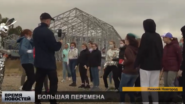 Они восстанавливают надпись, расположенную на слиянии Волги и Оки. Утренняя разминка на территории стадиона «Нижний Новгород». И не просто зарядка, тут еще и благотворительность. На площадку пригласили воспитанников детских домов. И вместе с ними участники конкурса «Большая перемена» (12+) сначала согреваются с помощью танцев, а затем был сюрприз. К детям присоединился нападающий футбольного клуба «Нижний Новгород» Николай Калинский. Он подарил воспитанникам детских домов мячи с автографами игроков футбольного клуба, а также сфотографировался со всеми желающими. А это уже следующая активность участников «Большой перемены». Школьники из разных городов помогают благоустраивать локации в Нижнем Новгороде. В этот раз они приводят в порядок территорию Стрелки, в частности, восстанавливают яркую надпись «Стрелка», которая расположена на самом слиянии Волги и Оки, и еще прошлись по территории и собрали мусор. Всю активность сопровождает музыка от приглашенного диджея. Всероссийский конкурс «Большая перемена» для школьников стартовал в режиме онлайн в конце марта 2020 года. Как сообщал ранее губернатор Нижегородской области, от нашего региона было зарегистрировано более 23 тысяч участников, в полуфинал прошли 207 учащихся 9−11 классов. Это четвертый результат в РФ, что и стало одним из оснований определить Нижегородскую область стартовой площадкой, с которой начинается открытие полуфиналов конкурса.