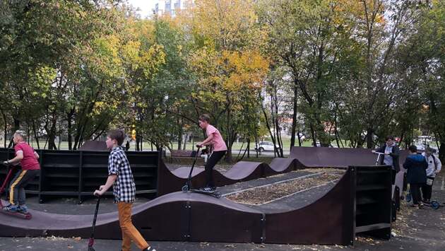 Ребята осваивают первый в Академическом районе памп-трек