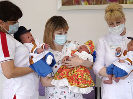 Новорожденных ноябрьцев в День России из роддома выписывают в русских народных костюмах