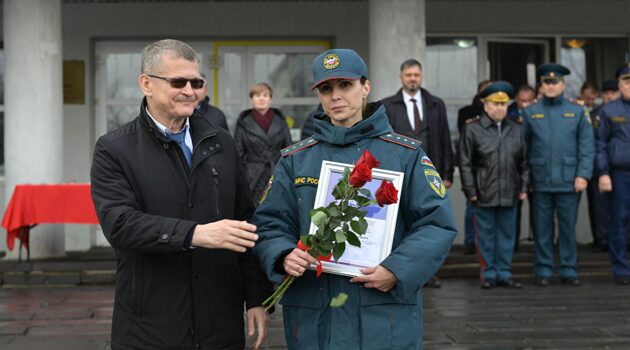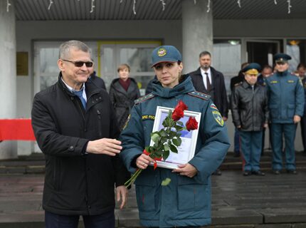 Петр Банников поздравил сотрудников Дзержинского пожарно-спасательного гарнизона с 95-летием