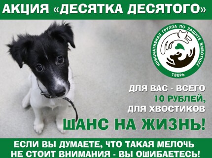 В Твери и области проходит ежемесячная благотворительная акция помощи животным "Десятка десятого"