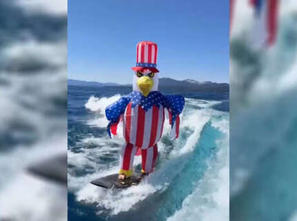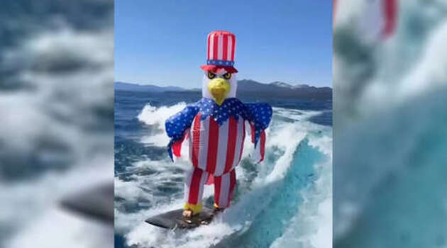 Цукерберг прокатился на серфе в костюме орла в честь Дня независимости США