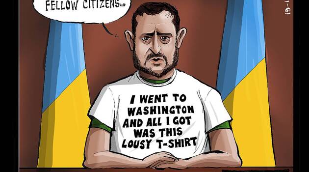 Появилась посвященная поездке Зеленского в США карикатура