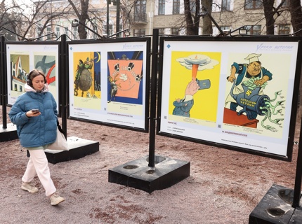 Выставка плакатов "Уроки истории" открылась на Гоголевском бульваре