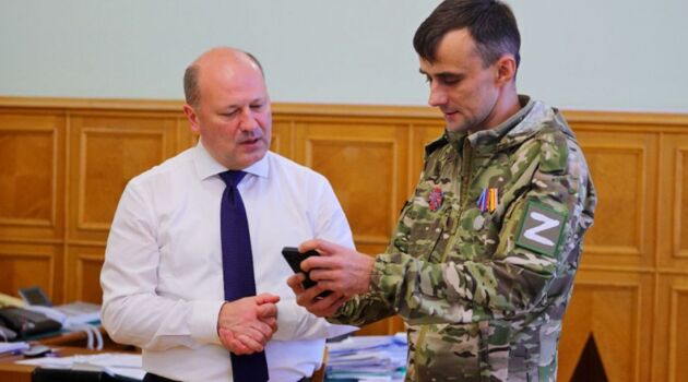 Александру Блинову и Роману Филатову – ветеранам СВО, а также матери героя спецоперации Романа Перова — Жанне Августинович глава города Александр Скрябин вручил награды