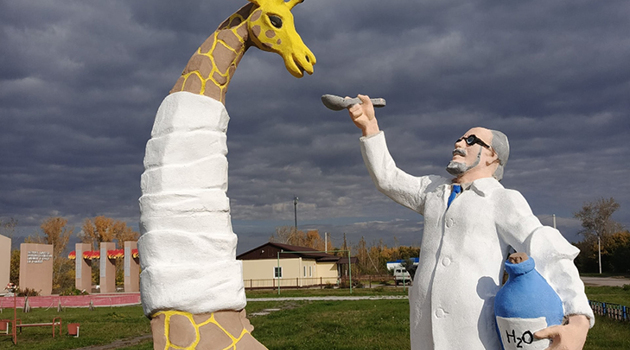 Скульптуру Айболита и жирафа отреставрировали под Новосибирском