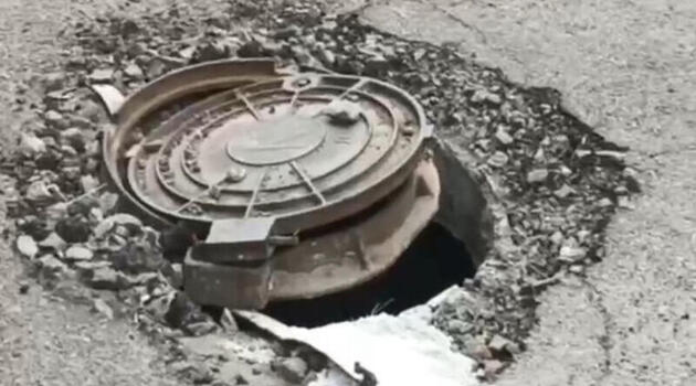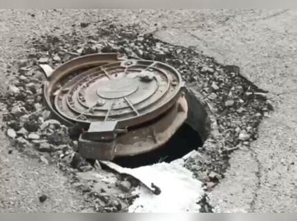Асфальт провалился на тротуаре в микрорайоне Северный