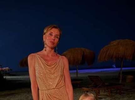 Ведущая Светлана Бондарчук в платье с разрезом снялась с сыном на пляже