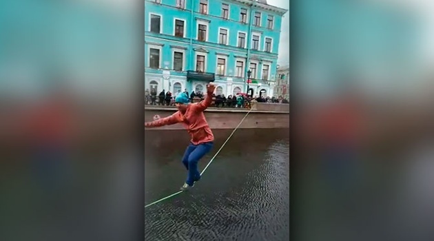«Пощекотали нервы»: канатоходцы прошли без страховки над каналом в Петербурге