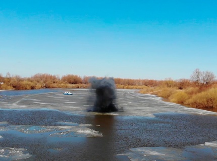 На реке Ишим взрывают лед для защиты от паводка около 70 тысяч человек