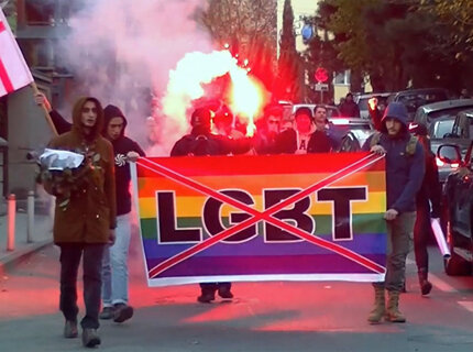 "Альянс патриотов" сжег флаги ЛГБТ в ходе шумной акции протеста в Тбилиси
