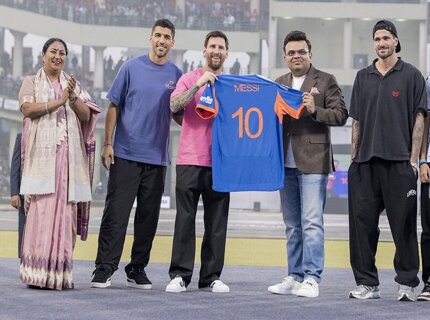 Тур Месси по Индии завершился в Нью-Дели. Форвард «Интер Майами», Суарес и Де Поль получили футболки сборной страны по крикету, встретились с министром