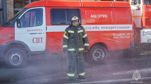 Волгоградские пожарные окатили водой уходящего на пенсию коллегу