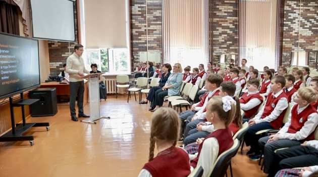 Выпускник школы №126 Юрий Шалабаев провел урок истории для пятиклассников