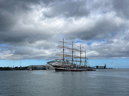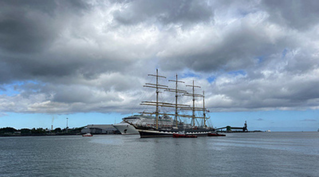 "Крузенштерн" прибыл с официальным визитом в Порт-Луи под парусами Победы