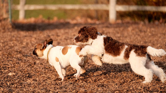 - Гулять только на поводке вдали от других собак — это правило безопасности номер один. Даже самая послушная собака в течку может сбежать.