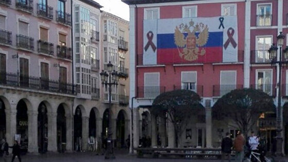 МАДРИД, 6 апр — РИА Новости, Сергей Сарымов. Флаг России с траурными лентами в связи с терактами в метро Санкт-Петербурга появился на одном из зданий на главной площади испанского города Бургос. Инициатором данной акции стала Европейская платформа друзей России (PEAR), во главе с её президентом Еугенио Дорао. По словам Дорао, флаг России был вывешен в память о жертвах теракта в Санкт-Петербурге. Он также отметил, что "благодарен за роль лидера, которую примерила на себя Россия в реальной борьбе с фашизмом и исламским терроризмом". Днём 3 апреля на перегоне между станциями "Сенная площадь" и "Технологический институт-2" петербургского метро произошёл взрыв. Ещё один взрыв, на станции "Площадь Восстания", удалось предотвратить благодаря своевременному обнаружению самодельного взрывного устройства, замаскированного под автомобильный огнетушитель. По последним данным, в результате взрыва 14 человек погибли, 50 пострадавших остаются в больницах. Следственный комитет России возбудил уголовное дело о теракте. По данным СК, исполнителем теракта был уроженец Киргизии Акбаржон Джалилов 1995 года рождения; именно он сначала оставил замаскированную бомбу на станции "Площадь Восстания", а потом взорвал себя в вагоне поезда.
