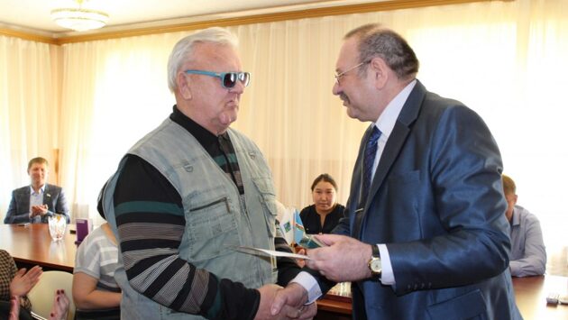 День Республики Саха (Якутия) в Верхнеколымском улусе ознаменовался одним важным событием. 27 апреля в администрации района торжественно вручили государственные и муниципальные награды людям, чей вклад в развитие республики и района заслуживал достойного внимания и почтения. Награды и грамоты виновникам торжества вручил Леонид Лысенко, первый заместитель главы района. За заслуги в области жилищно-коммунального хозяйства, вклад в социально-экономическое развитие республики и многолетний добросовестный труд грамотой главы Якутии был отмечен Кудрат Лукманов, директор Верхнеколымского филиала ГУП «ЖКХ РС (Я)». За заслуги в области социально-экономического развития республики грамотой правительства республики награждена Ольга Черная, директор ООО «Хлебосол». Почетным знаком «За заслуги в развитии местного самоуправления» Всероссийского Совета местного самоуправления наградили Татьяну Макарову, главу муниципального образования «Верхнеколымский наслег». Как отметил Леонид Александрович, такой почетный знак – новая награда. Татьяна Николаевна поблагодарила всех за помощь и сотрудничество. «Эта награда принадлежит всем вам и моим сотрудникам», – сказала она. За значительный вклад в развитие оленеводства и сельского хозяйства Верхнеколымского района, за долголетний добросовестный труд почетный знаком «За вклад в развитие сельского хозяйства Верхнеколымского района» наградили Семена Слепцова, оленевода-наставника СХПК «Гяван». За внесенный вклад в развитие и пропаганду вольной борьбы в республике знаком «60-летие развития вольной борьбы в РС (Я)» министерства спорта наградили Игоря Кудрявцева, мастера спорта СССР по вольной борьбе, 15-кратного чемпиона Якутии, 20-кратного чемпиона северной зоны, чемпиона Дальнего Востока и Сибири по тувинской борьбе «хуреш». За весомый вклад в подготовку и проведение Всероссийской сельскохозяйственной переписи 2016 года медаль Федеральной службы государственной статистики «За труды в проведении Всероссийской сельскохозяйственной переписи» вручили Людмиле Чебуниной, уполномоченному представителю государственной страховой медицинской компании «Сахамедстрах». За весомый вклад в подготовку и проведение Всероссийской сельскохозяйственной переписи 2016 года благодарственным письмом Федеральной службы Государственной статистики отметили Наталью Попову, главного специалиста-эксперта отдела государственной статистики. В завершении этого торжественного события Леонид Лысенко поздравил всех с праздником и пожелал здоровья и долголетия. 1 из 4