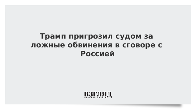Трамп пригрозил судом за ложные обвинения в сговоре с Россией