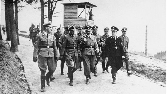 Кальтенбруннер, Гиммлер, Айгрубер, Цирайс инспектируют концентрационный лагерь Маутхаузен, апрель 1941 года.
