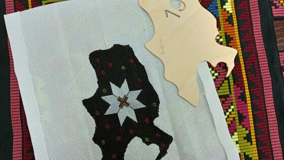 Акцию запустили в Чувашии, приурочив к Году культурного наследия народов России. Присоединились к проекту и мастера декоративно-прикладного искусства из Удмуртии — Елена Тополева и Надежда Мансурова. На холсте, повторяющем копии границ республики, они вышили традиционные узоры. В работе использована техника, характерная для центральных районов Удмуртии — Шарканского и Якшур-Бодьинского — вышивка серебряной и позументной нитью вприкреп.