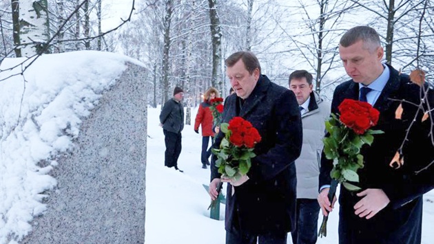 В канун 80-летия полного снятия блокады, которое будет отмечаться в январе наступающего года, белорусская делегация 26 декабря возложила цветы к памятникам и вечному огню на Пискаревском мемориальном кладбище.