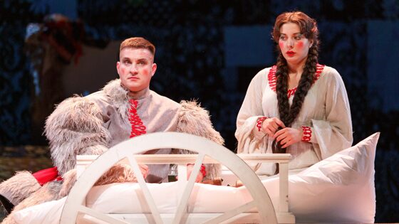 Театр «Комедiя» придумал новогодние представления для детей и взрослых на одной сцене и почти в одних костюмах. Такого необычного хода в нижегородских театрах еще не было. Перед Новым годом нижегородский театр комедии подарил зрителям классическую рождественскую сказку — «Ночь перед Рождеством». Её поставили два режиссёра, с двумя разными актёрскими составами но в одном пространстве. Так что утром сказку смотрят дети, а вечером в том же антураже — взрослые. В итоге получились два абсолютно разных спектакля — каждый на своего зрителя: «Диковины в Диканьке» (6+) для юных, а «сказка с чертовщинкой» «Ночь перед Рождеством» (16+) — для старшего поколения зрителей. На сцене перед ними заснеженная деревня — крыша и труба посреди сцены с манящими уютными огоньками, домиками, фонариками и масленичным столбом с лентами. Стилизованные костюмы героев с алыми помпонами, алыми сапожками и забавными деталями оттеняют эффектные видео-проекции, которые позволяют героями то летать среди туч под Луной, то оказываться во дворце императрицы. И тут же море музыки и танцев. Режиссер Надежда Ковалёва на основе текста Гоголя создала свою инсценировку и раскрыла всем знакомую историю в новых красках. В роли влюблённого кузнеца Вакулы у неё выступил брутальный Дмитрий Ерин, а капризную красавицу Оксану сыграла Мария Коваленко. В сказке Андрея Богданова главных героев сыграли Андрей Перунцов и Виолетта Жукова. Их герои получились более наивные и прямолинейные. И сама сказка — более детская. Есть актеры, которые заняты в обоих спектаклях, но играют разных персонажей. Например, Мария Коваленко в детской сказке превращается в Куму. После праздников оба спектакля войдут в репертуар театра. 0+ Ранее на сайте pravda-nn.ru сообщалось, что выставка «Новогодние и рождественские открытки» открывается в Русском музее фотографии (0+).