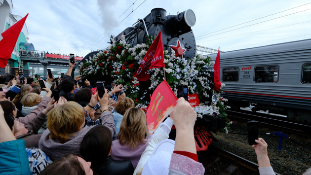 В Новосибирске 7 мая торжественно встретили ретропоезд «Эшелон Победы»