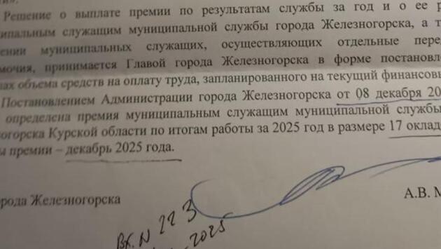 Премии по 17 окладов должны в декабре выплатить в Железногорске муниципальным служащим