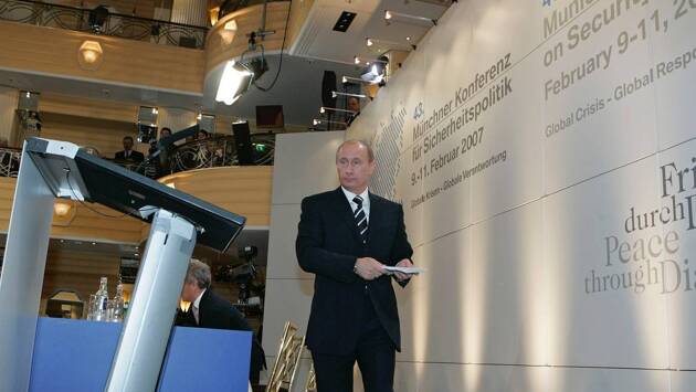 Мюнхенская речь Путина прозвучала 10 февраля 2007 года на 43-й конференции по безопасности. В ней российский лидер раскритиковал однополярный миропорядок и доминирование США, а также высказался о всеобъемлющем характере безопасности, заявив, что «безопасность каждого — это безопасность всех». Выступление Путина трактуют как сигнал Западу о том, какую внешнюю политику решила проводить Россия, а также о готовности Москвы защищать свои интересы и играть активную роль в формировании мирового порядка.