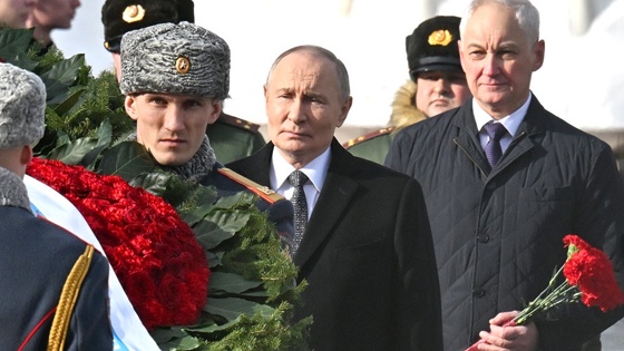 Вместе с президентом к мемориалу пришли министр обороны Андрей Белоусов и офицеры, награжденные сегодня высокими государственными наградами.