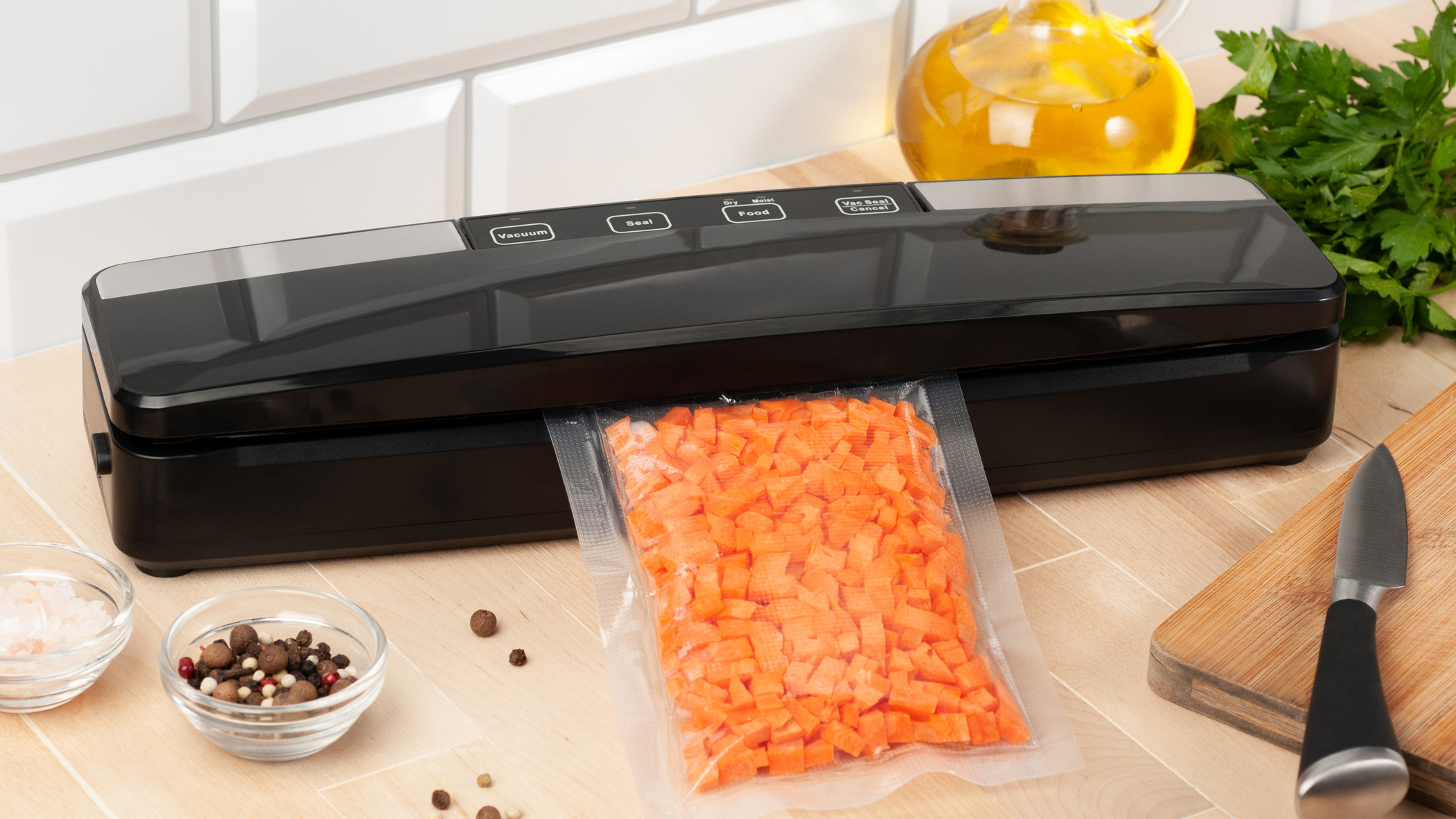 Вакууматор решает сразу несколько задач. На кухне он позволяет быстро мариновать мясо и рыбу, идеально подходит для приготовления по технологии су-вид и продлевает свежесть продуктов. Но он также пригодится для защиты от влаги и пыли — с его помощью можно надёжно упаковать документы, важные бумаги, книги, технику, аптечку или комплекты снаряжения для походов и путешествий.