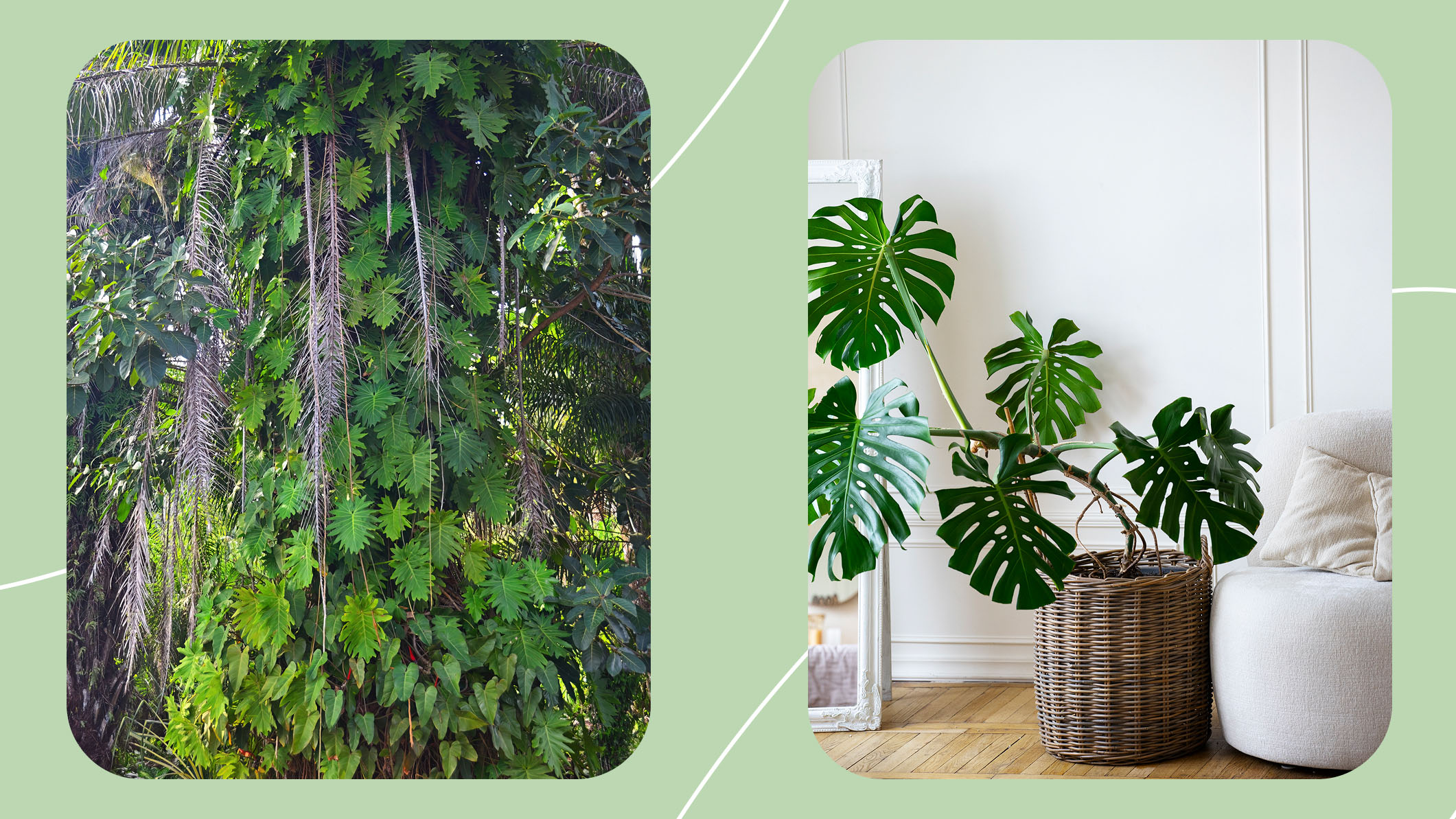 Монстера — тропическая лиана, которая растёт в лесах Центральной и Южной Америки и взбирается по стволам деревьев, цепляясь воздушными корнями. В дикой среде такие лианы могут подниматься очень высоко и расправлять огромные кожистые листья. Дома же монстера живёт в горшке, держится за моховый шест или другую опору и обычно гораздо компактнее, если вовремя подрезать побеги и контролировать освещение.