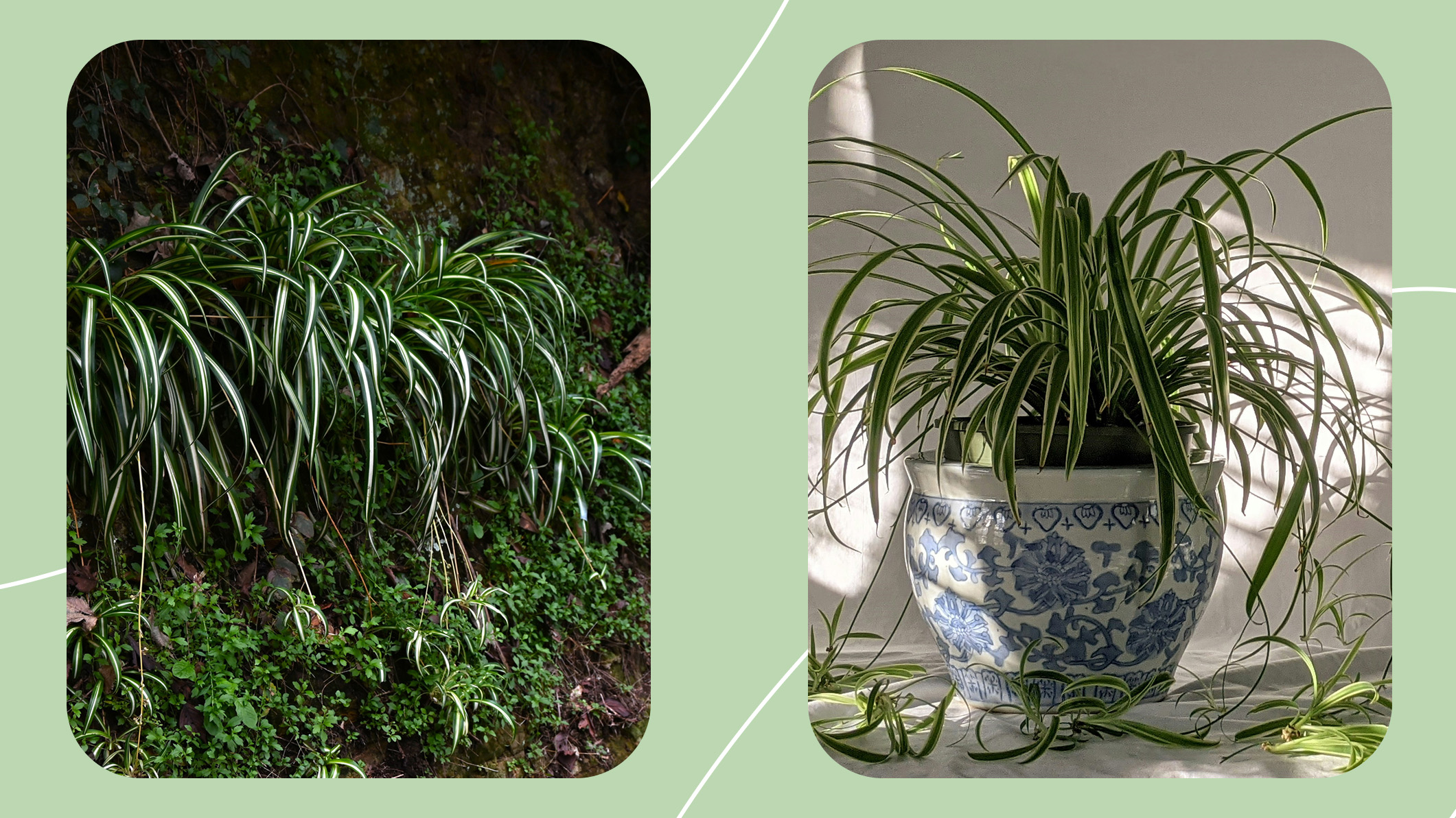 Хлорофитум в горшке чаще всего выглядит как компактный зелёный фонтан: узкие дуговидные листья с белыми или светло‑зелёными полосами расходятся от центра и свисают по краям. В природе же хлорофитумы — целый род из примерно 150 видов многолетних трав семейства спаржевых, которые растут в грунте в тропических и субтропических районах Африки, Азии и Австралии и часто образуют плотные заросли травы на одном месте. У диких растений, как и у комнатных форм, мясистые корни и клубни помогают запасать воду и переживать периоды засухи. Дома мы чаще всего имеем дело с хлорофитумом хохлатым — неприхотливым африканским видом, который хорошо чувствует себя в обычной комнатной температуре и не занимает много места.