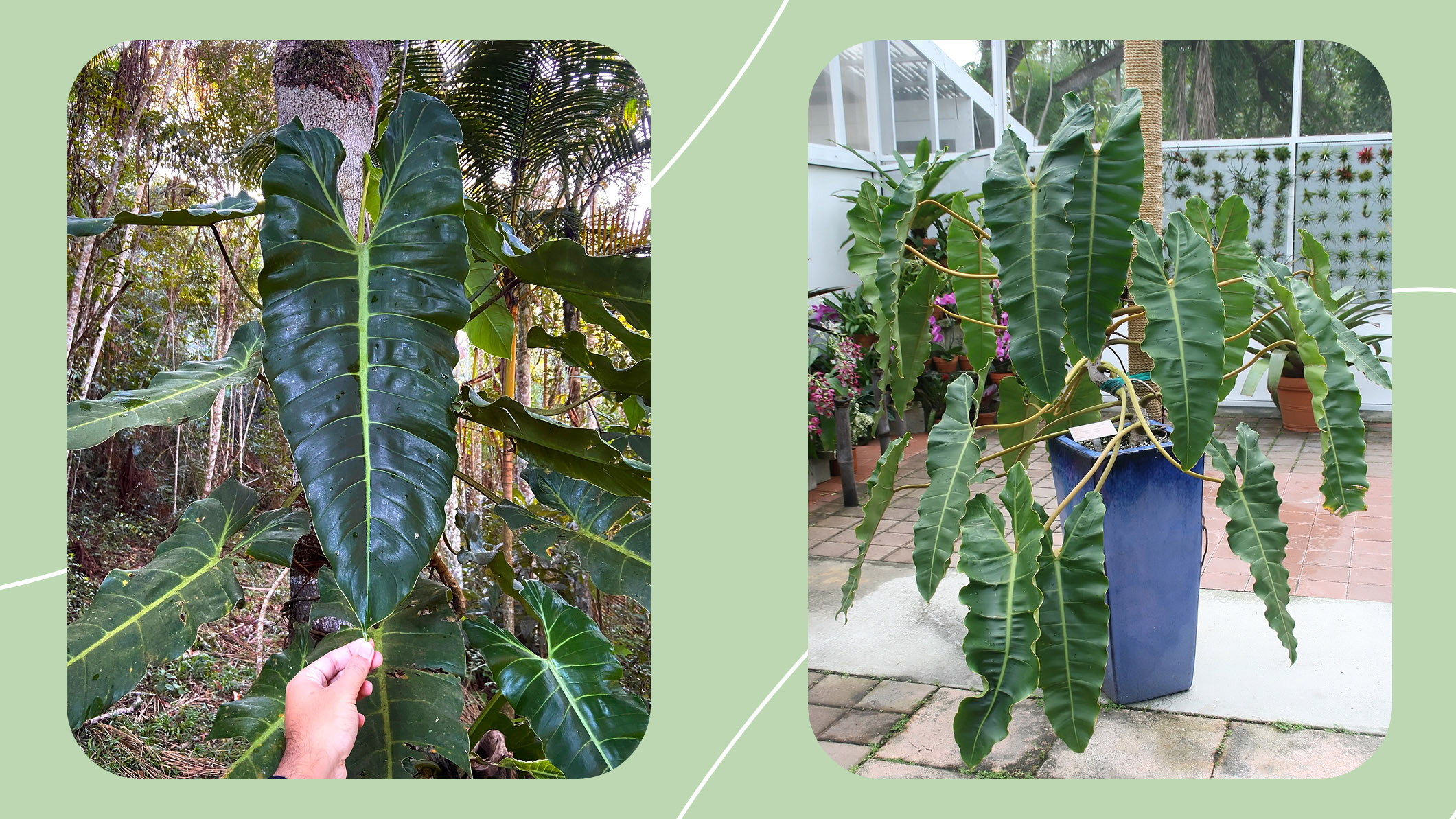 У филодендронов есть своя стратегия поиска идеального места. Когда они дорастают до кроны дерева-хозяина, они начинают буквально путешествовать по ветвям: наращивать стебель спереди и отмирать сзади, как бы переползая с места на место. Многие комнатные филодендроны удивительно терпимы к бытовым условиям и спокойно растут без тропической жары и влажности, если дать им тёплую комнату, рассеянный свет и не заливать корни.