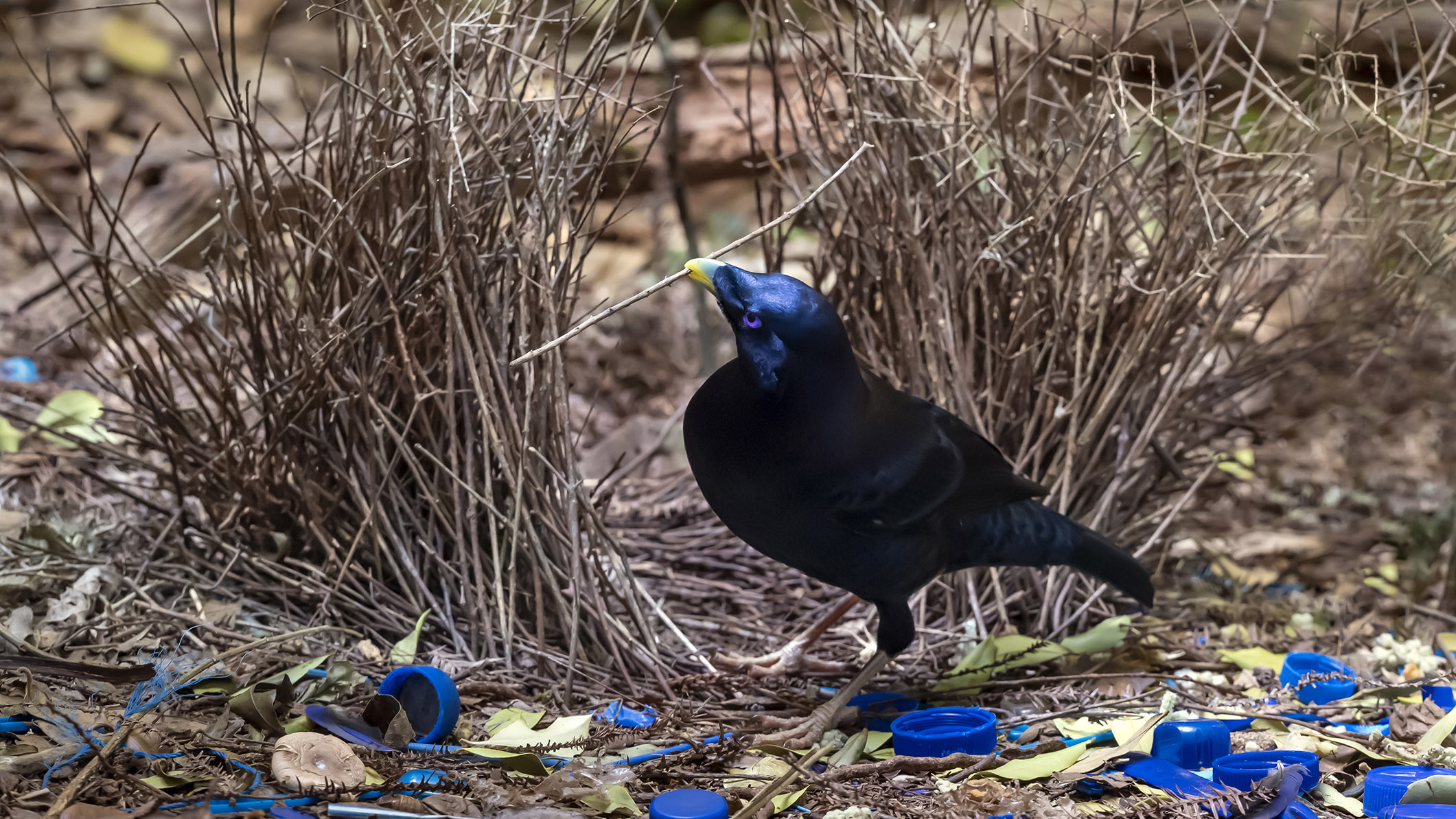 Атласные шалашники впечатляют партнёрш убранством гнезда