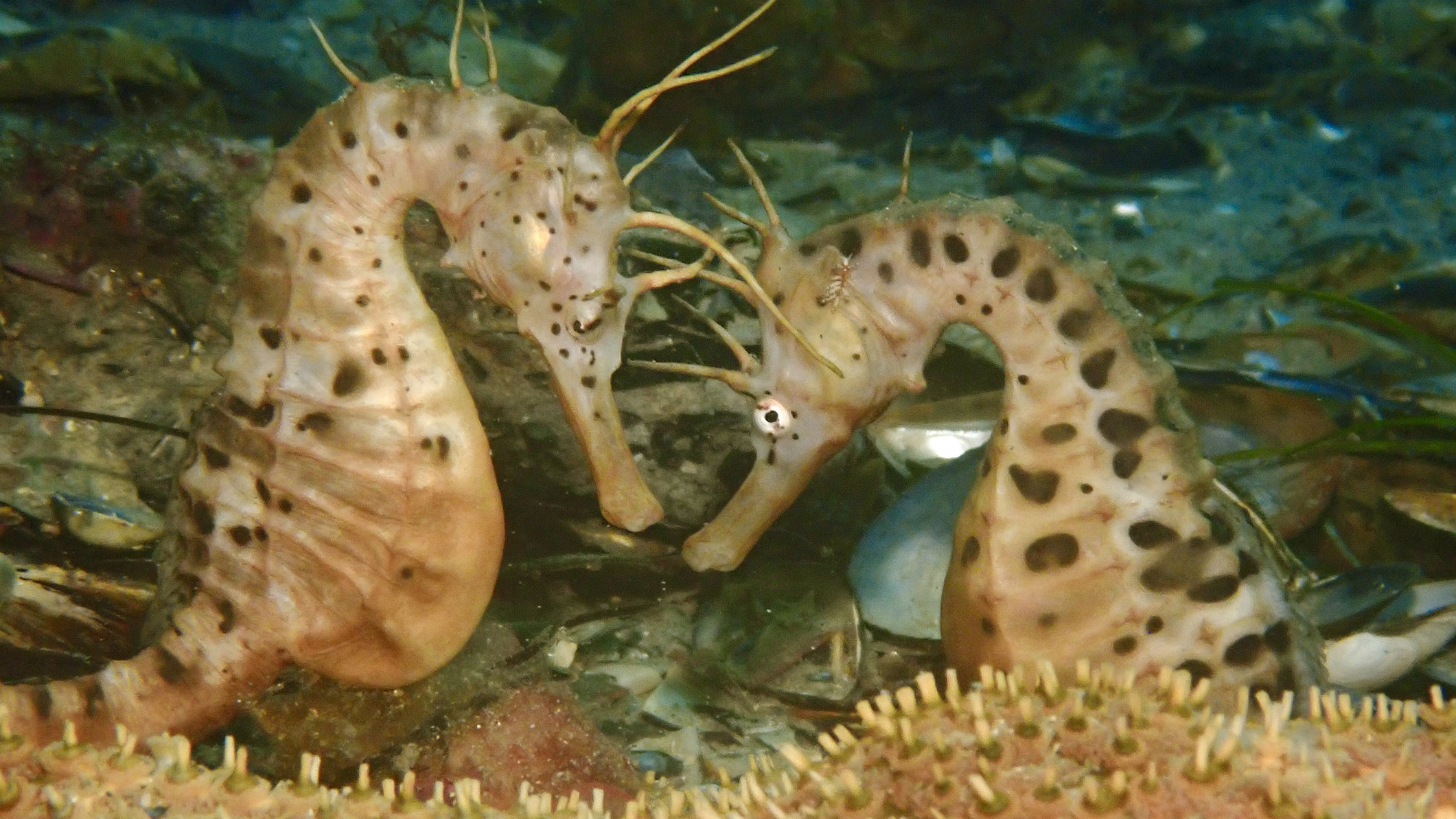 Брачный ритуал морских коньков принёс им репутацию одного из самых нежных обитателей океана. Два потенциальных влюблённых при встрече касаются носами, сплетают хвосты и начинают танец. Они часами кружатся, мягко покачиваясь в такт течению. При этом они меняют цвет от светлого к тёмному — как будто чувства отражаются на цвете их кожи.