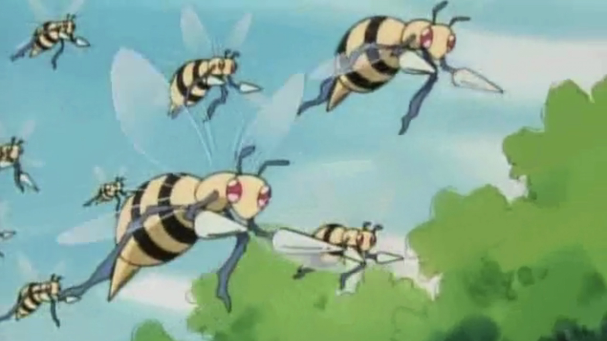 Название этого покемона можно разложить на «bee» (пчела) и «drill» (дрель). Бидрилл выглядит как что-то среднее между пчелой и осой — у него жёлтое тельце в чёрную полоску, округлое брюшко и крупное жало.