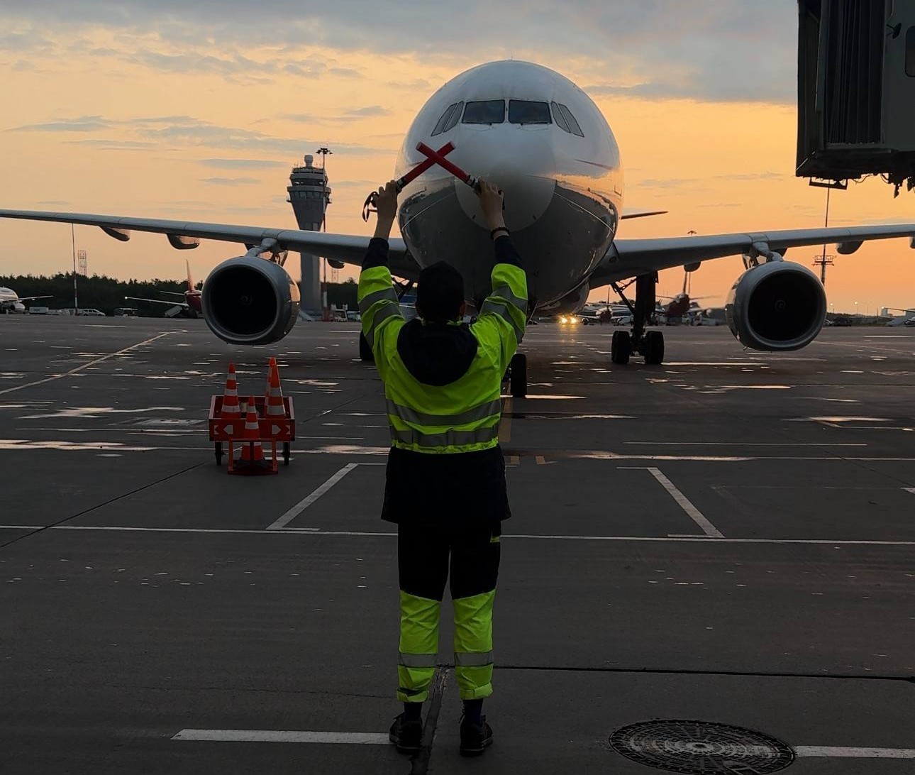 Во время буксировки супервайзер идёт рядом с самолётом, чтобы не допустить столкновения судна с другой техникой. В это время он обязательно «стоит на ушах».