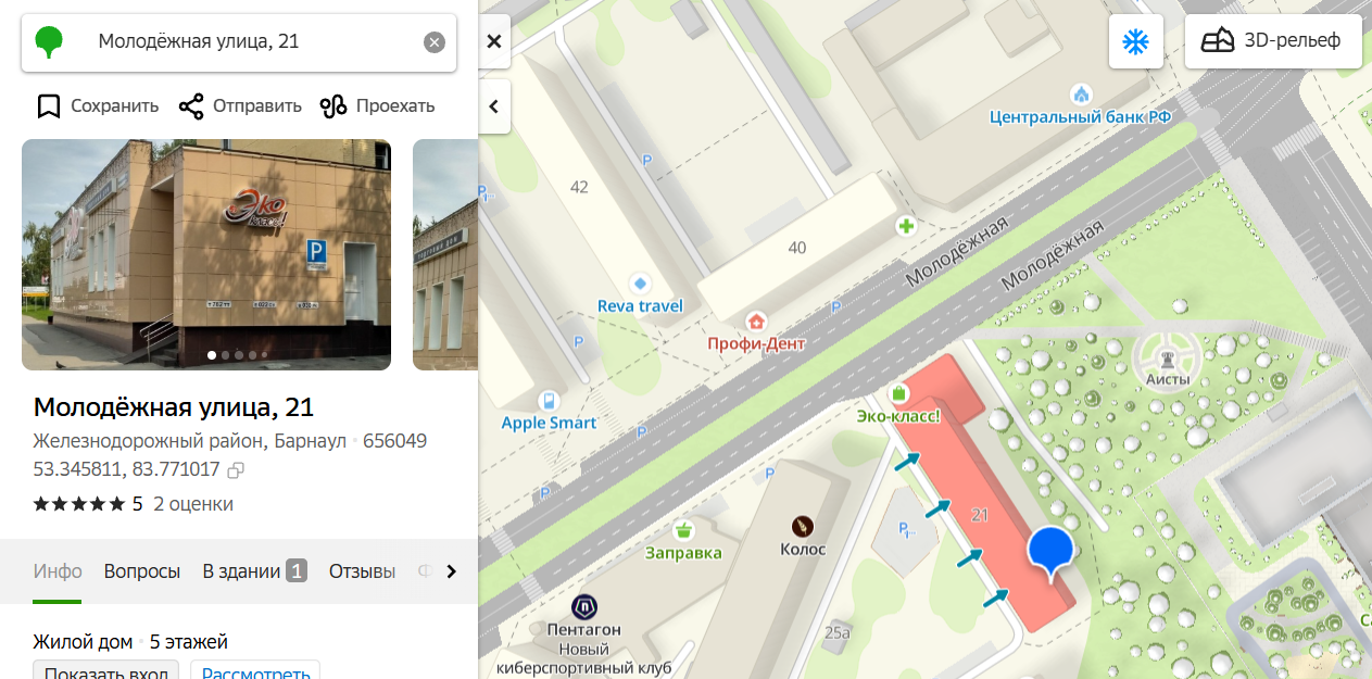 Пример. Выбираем город и адрес проживания, рядом с которым хочется найти вакансии.