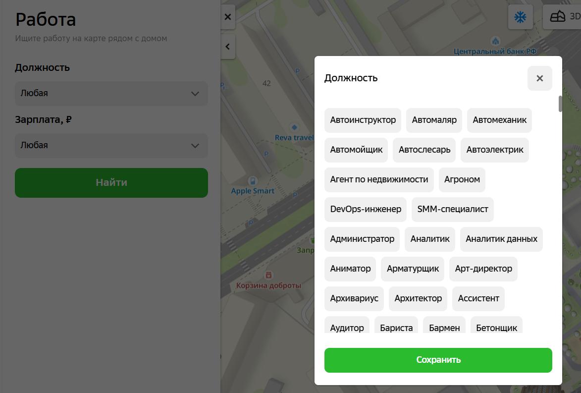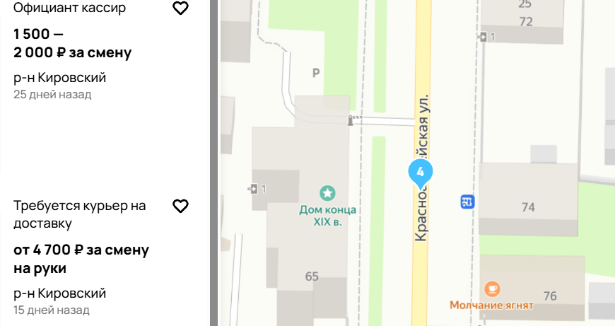 Ещё один вариант — посмотреть предложения о работе на общей карте города.