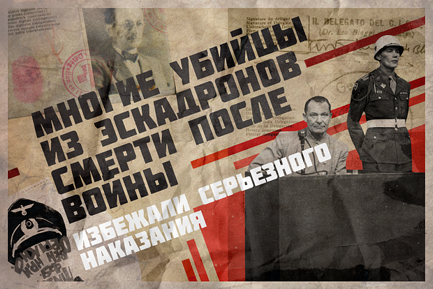 Удавалось выкручиваться и руководителям более мелких подразделений. Командир зондеркоманды 10А Кристман, за время войны выросший в звании до оберштурмбаннфюрера СС, в мае 1945-го скрылся с поддельным паспортом, а после разоблачения и помещения в лагерь для интернированных лиц бежал. Еще через три года он попал в Аргентину и сохранил верность идеологии нацизма.